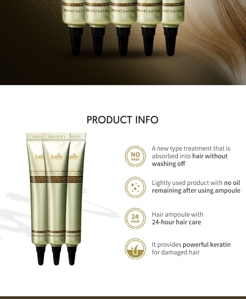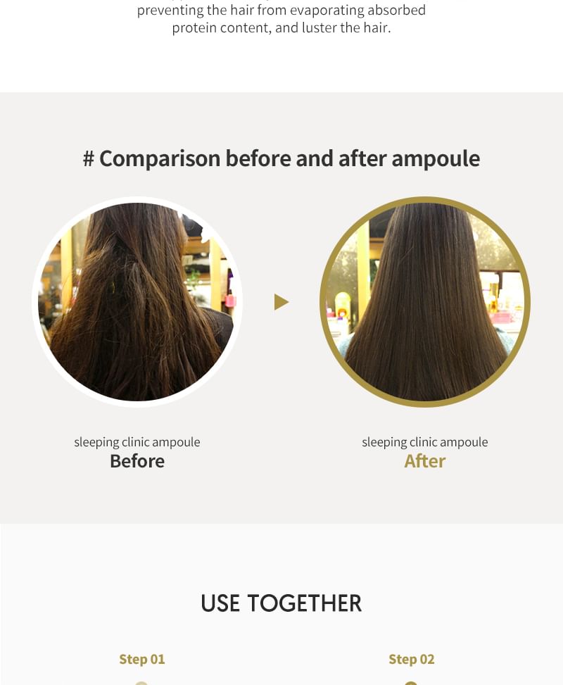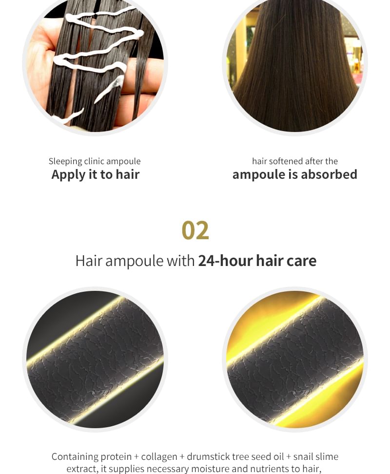 - A leave-in hair ampoule helps managing damaged hair while sleeping.