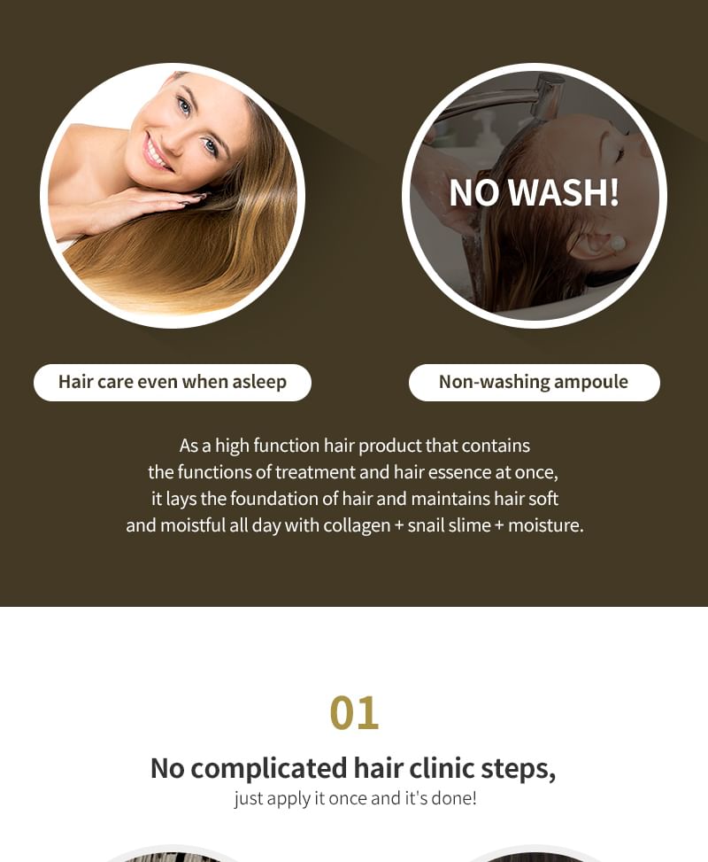 - Formulated with Protein, Collagen and Snail Slime Extract, it injects nutrients and moisture into the hair, enhancing hair's natural shine.