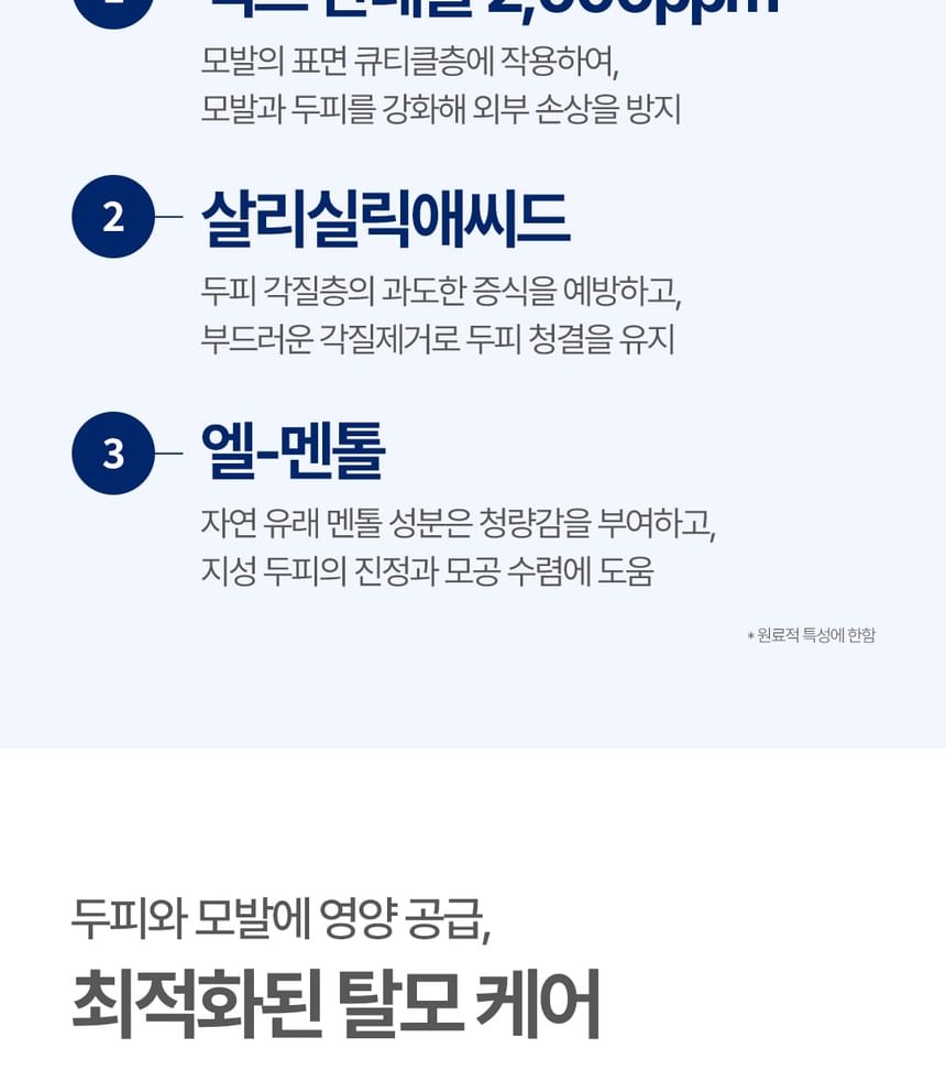 • Dexpanthenol, Salicylic Acid and l-Menthol help strengthening the scalp.