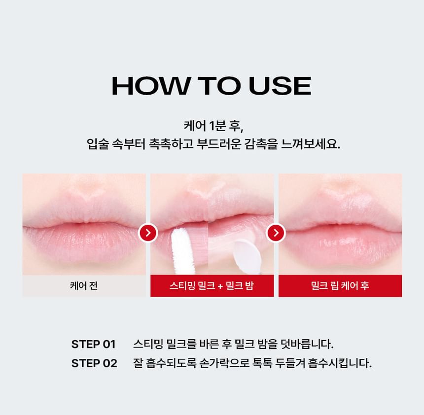 - After applying Steaming Milk, apply a moderate amount of the Milk Balm evenly and pat it gently for better absorption.