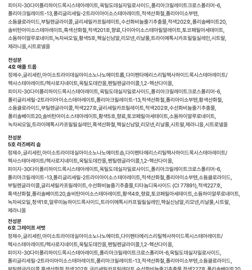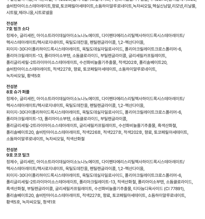 Water, Glycerin, Isotridecyl Isononanoate, Dipentaerythrityl Hexahydroxystearate/Hexastearate/Hexarosinate, Octyldodecanol, Pentylene Glycol, 1,2-Hexanediol, PEG-30 Dipolyhydroxystearate, Octyldodecyl Xyloside, Polyacrylate Crosspolymer-6, Polyglyceryl-2 Triisostearate, Polyacrylate-13, Iron Oxide Red, Polyisobutene, Sodium Chloride, Ferrous-Ferric Oxide, Butylene Glycol, Glyceryl Caprylate, Narcissus Tazetta Bulb Extract, Titanium Dioxide (CI 77891), Polysorbate 20, Sorbitan Isostearate, Fast Acid Magenta, Fragrance, Tocopheryl Acetate, Sodium Hyaluronate, Sunset Yellow FCF, Camellia Sinensis Seed Oil, Brilliant Blue FCF This list of ingredients represents all options or variants of this product. Actual ingredients in a given product option may vary from this list. Ingredients subject to change at manufacturer's discretion. For the most complete and up-to-date list of ingredients, please refer to product packaging.
