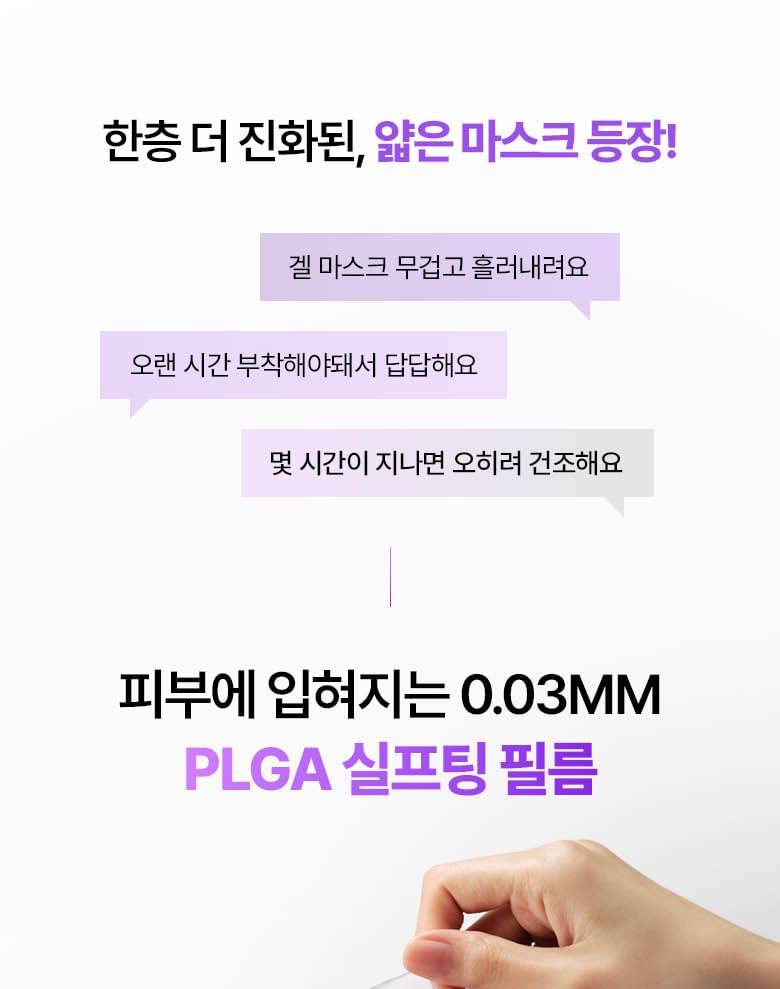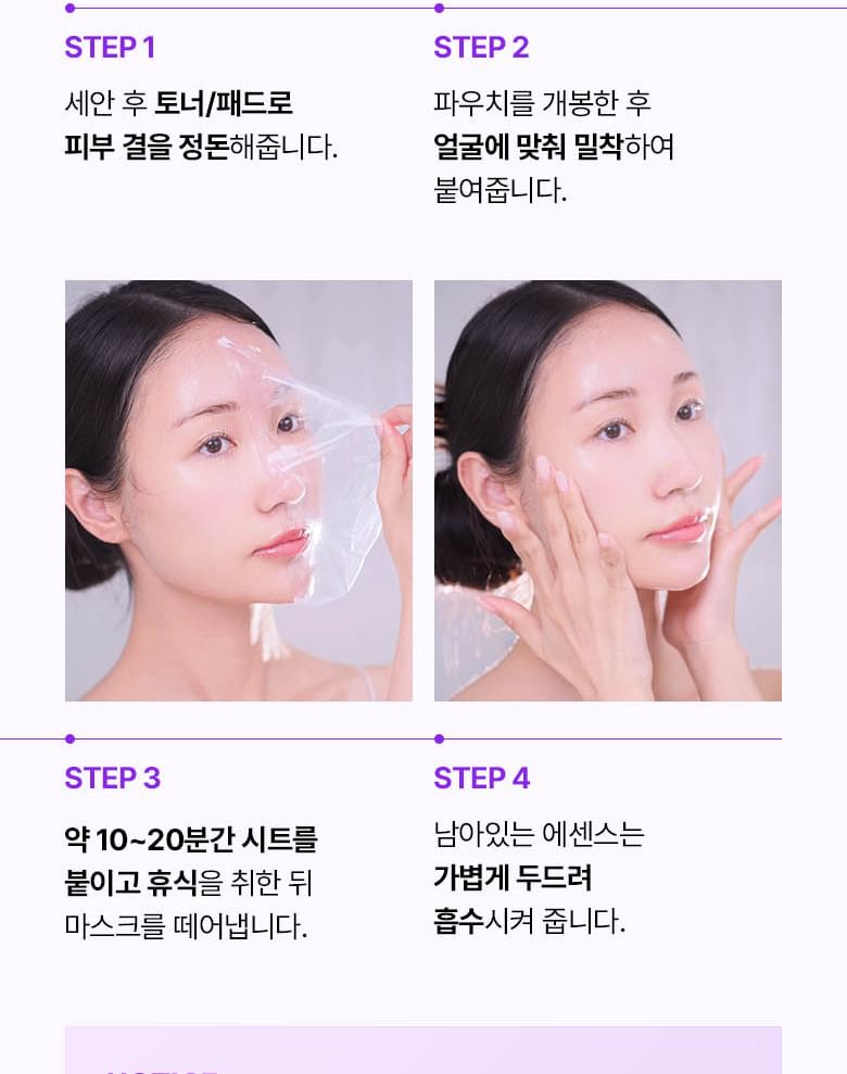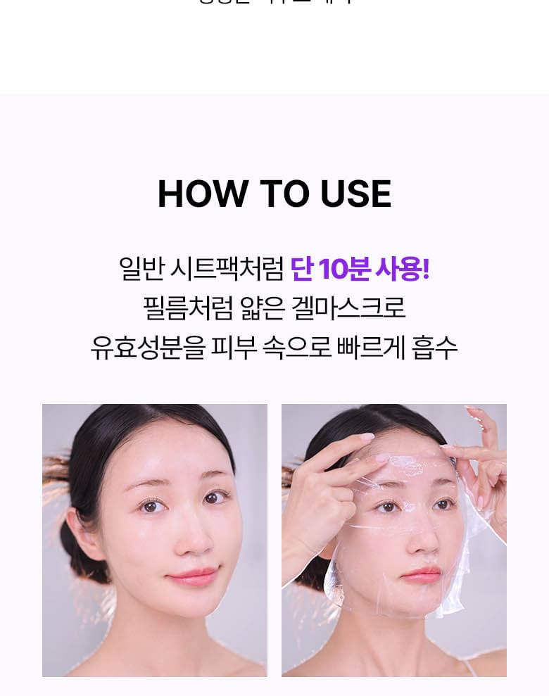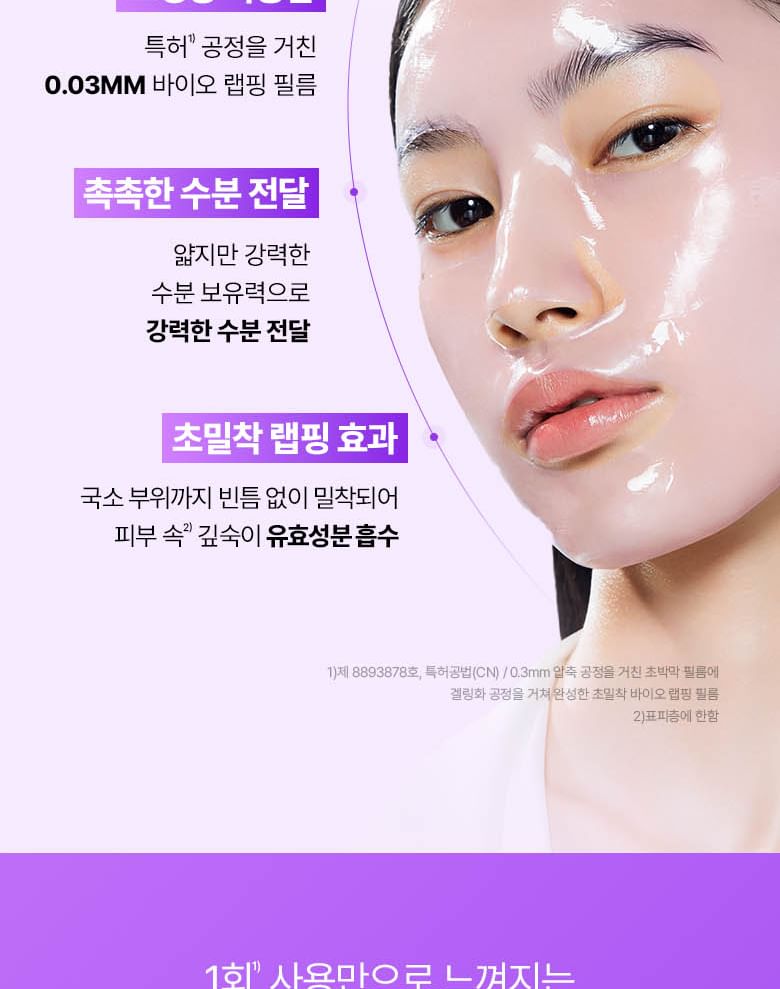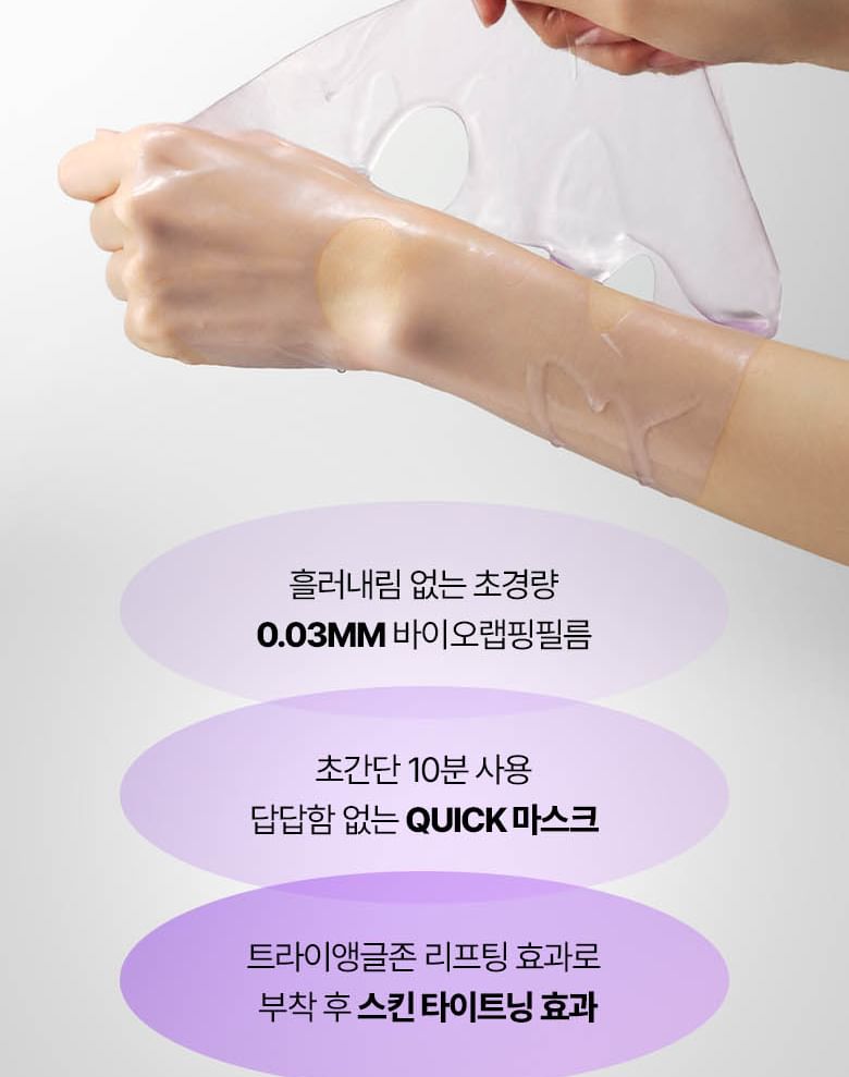 • The lightweight 0.03mm bio-wrapping film mask tightly adheres to the skin and keeps the skin hydrated.