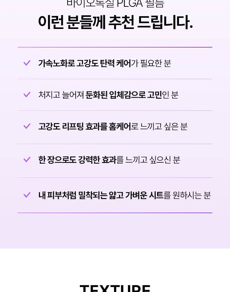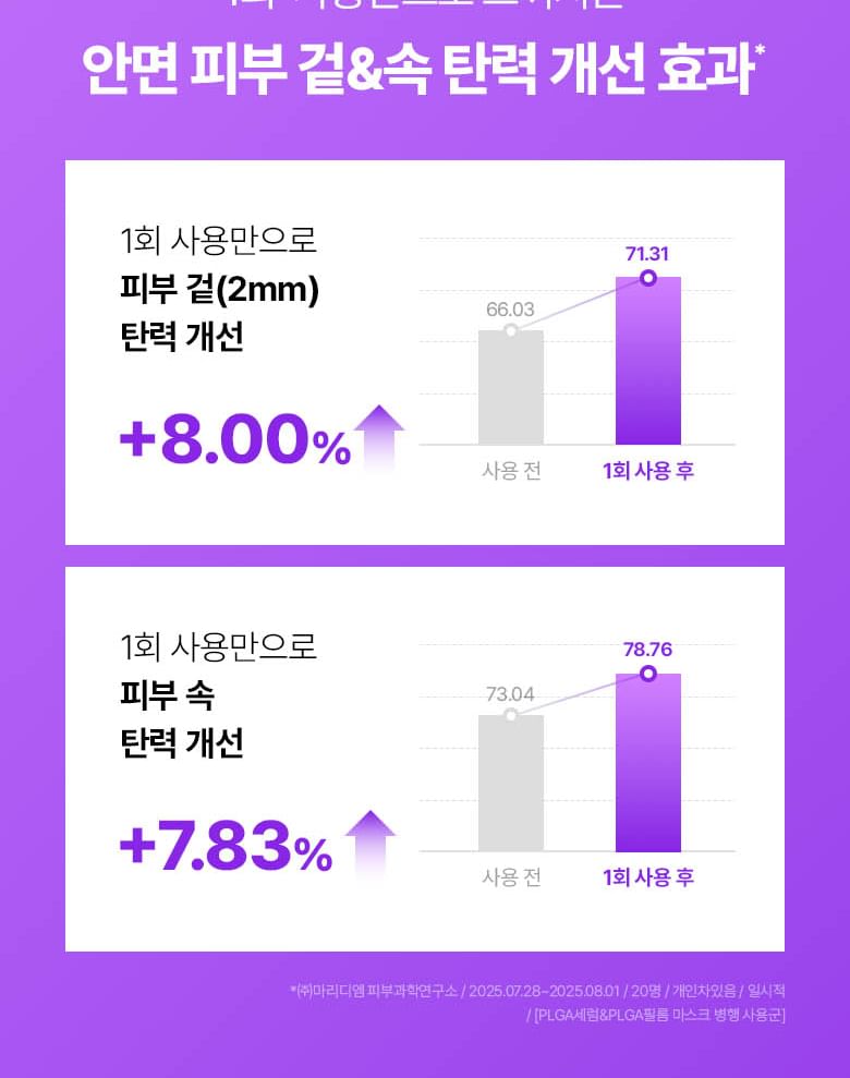 • Enriched with PLGA, Collagen Fiber, and Hyaluronic Acid to moisturize the skin and help enhance skin elasticity.