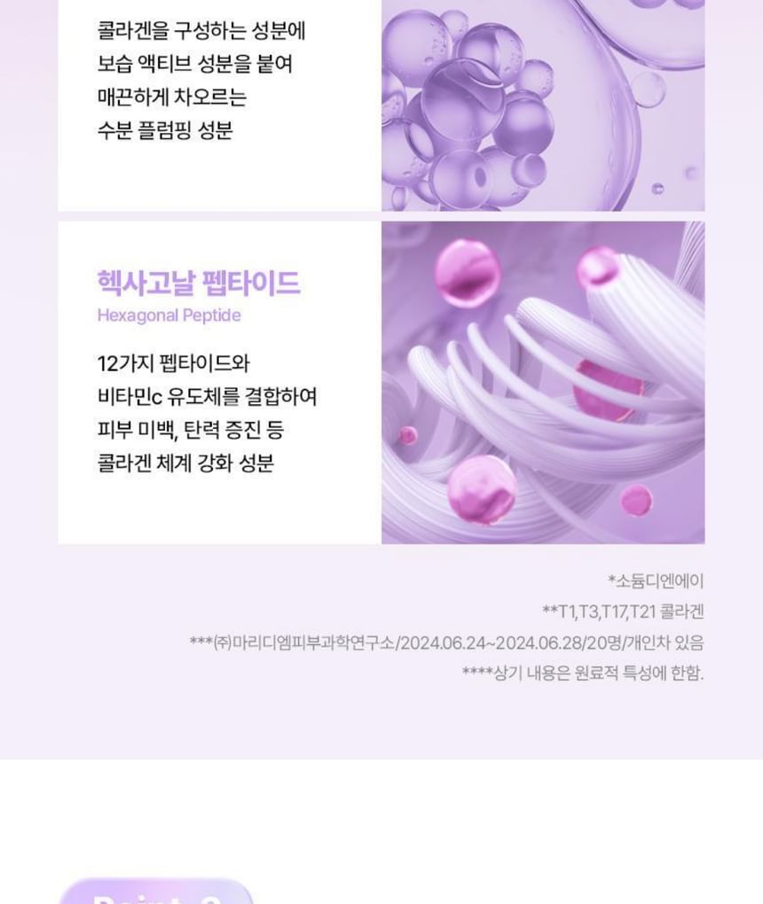 Water, Glycerin, Acrylates Copolymer, Betaine, Methylpropanediol, Niacinamide, Chondrus Crispus Powder, 1,2-Hexanediol, Lactobacillus Ferment, Collagen, Collagen Extract, Water Soluble Collagen, Sodium DNA, Adenosine, Hydrolyzed Glycosaminoglycans, Hydrolyzed Elastin, Glycogen, Dipalmitoyl Hydroxyproline, Sodium Hyaluronate, Allantoin, Panthenol, Carnosine, Beta-Glucan, Acetyl Hexapeptide-8, Ascorbic Acid Polypeptide, Acetyl Octapeptide-3, Acetyl Tetrapeptide-2, Acetyl Tetrapeptide-3, Acetyl Tetrapeptide-5, Acetyl Tetrapeptide-9, Copper Tripeptide-1, Nonapeptide-1, Palmitoyl Pentapeptide-4, Palmitoyl Tripeptide-1, Palmitoyl Tripeptide-5, Ceratonia Siliqua (Carob) Gum, Hydroxyacetophenone, Gellan Gum, Cyamopsis Tetragonoloba (Guar) Gum, Potassium Chloride, Cellulose Gum, Sucrose, Butylene Glycol, Dipotassium Glycyrrhizate, Ethylhexylglycerin, Polyglyceryl-10 Laurate, Propanediol, Cyanocobalamin, Arginine, Fructooligosaccharides, Fructan, Inulin Ingredients subject to change at manufacturer's discretion. For the most complete and up-to-date list of ingredients, please refer to product packaging.