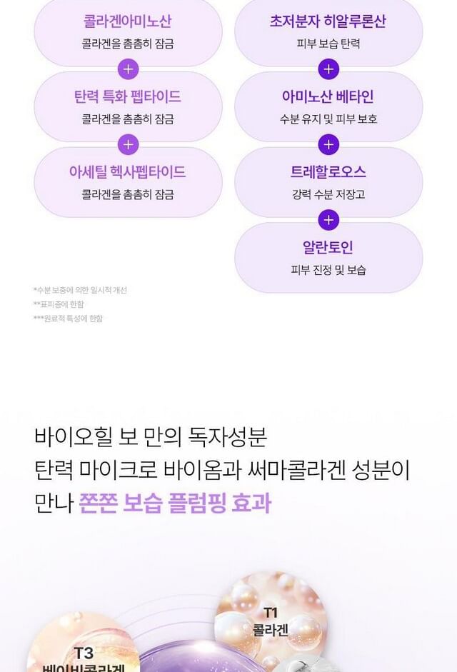 Water, Methylpropanediol, Glycerin, Butylene Glycol, Hydroxyacetophenone, Panthenol, Carbomer, Propanediol, Allantoin, Tromethamine, Polyglyceryl-10 Isostearate, Caprylyl Glycol, Ethylhexylglycerin, Adenosine, Xanthan Gum, Polyglyceryl-10 Oleate, Sodium Phytate, 1,2-Hexanediol, Sodium Hyaluronate, Betaine, Dipotassium Glycyrrhizate, Trehalose, Cyanocobalamin, Vincetoxicum Atratum Extract, Lactobacillus Ferment, Althaea Rosea Flower Extract, Tocopherol, Collagen (0.04 ppm), Collagen Extract (0.04 ppm), Arginine, Soluble Collagen (0.02 ppm), Dipeptide-15, Dipropylene Glycol, Fructooligosaccharides, Hydrolyzed Hyaluronic Acid, Hydrolyzed Glycosaminoglycans, Pentylene Glycol, Beta-Glucan, Fructan, Hydrogenated Lecithin, Cholesterol, Hydrolyzed Collagen (0.01 ppb), Inulin, Ceramide NP, Hydrolyzed Elastin, Acetyl Hexapeptide-1, Collagen Amino Acids (0.000001 ppb) Ingredients subject to change at manufacturer's discretion. For the most complete and up-to-date list of ingredients, please refer to product packaging.