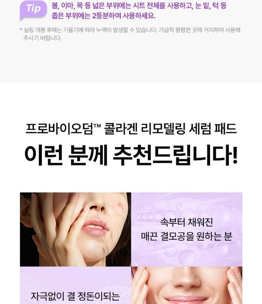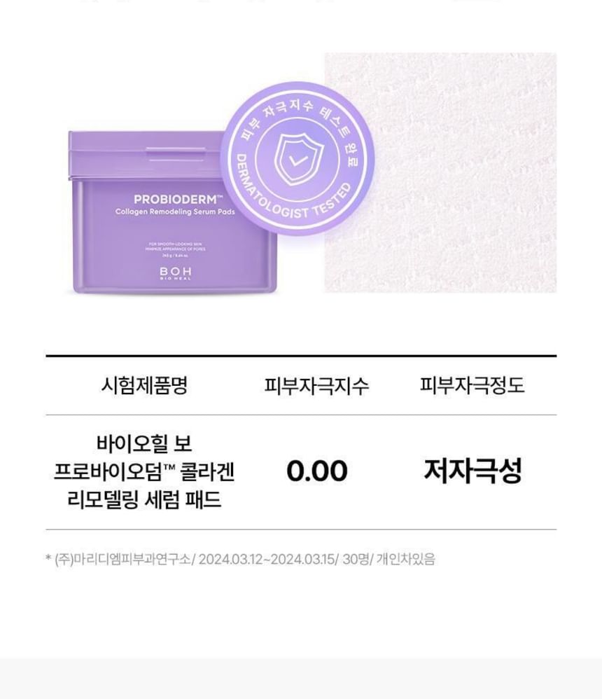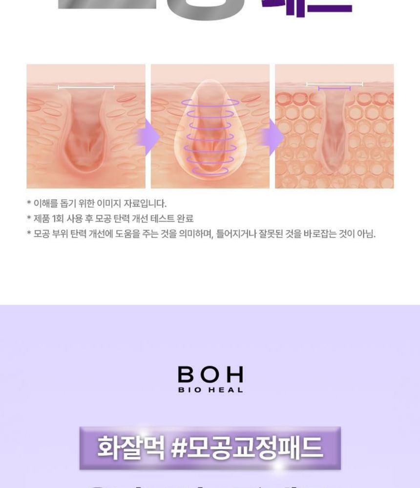 • Pore-refining and elasticity-improving serum pads formulated with BIOHEAL BOH's star Probioerm ingredients.