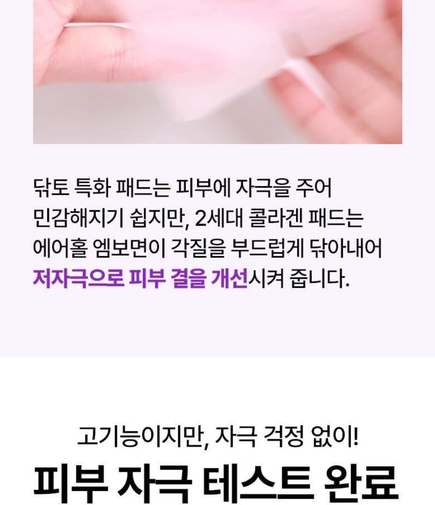 • Non-irritating soft pad material with airholes embossed side for mild exfoliation care.