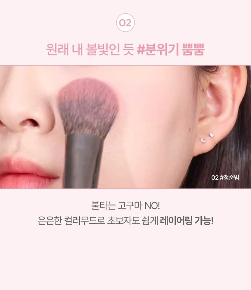 Take a moderate amount with a brush and apply onto your cheeks. Blend it out.