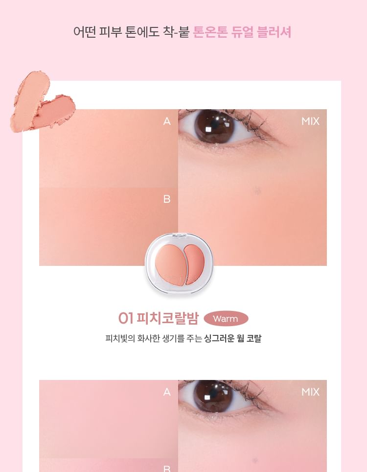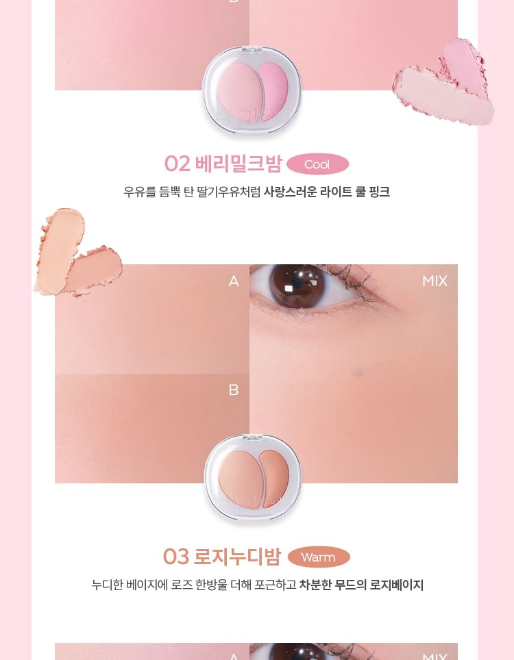 • A duo face blush creates milky and soft makeup looks.