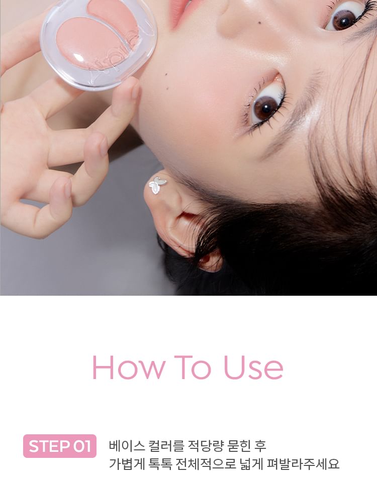 1. Apply a moderate amount onto the cheeks with a makeup brush or your fingertips.