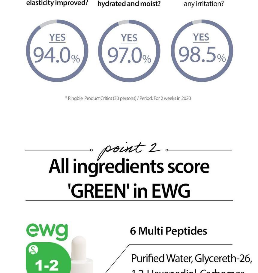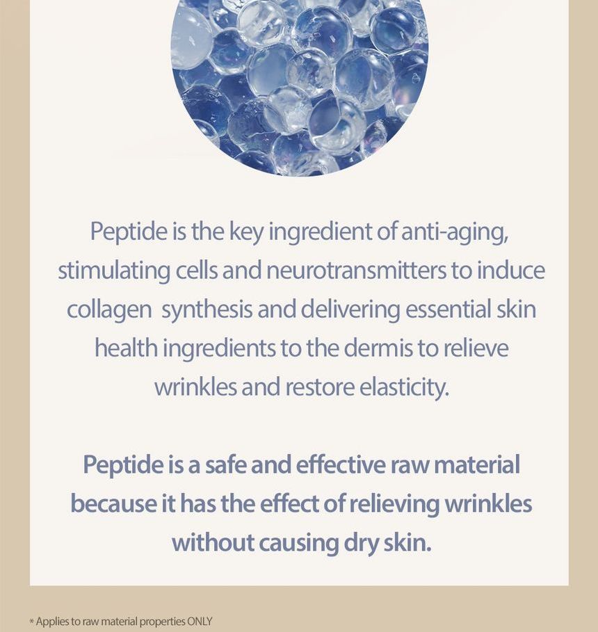 • A serum packed with 6 kinds of peptides that work together in synergy to stimulate skin regeneration and refine visible wrinkles, preventing advanced signs of aging.